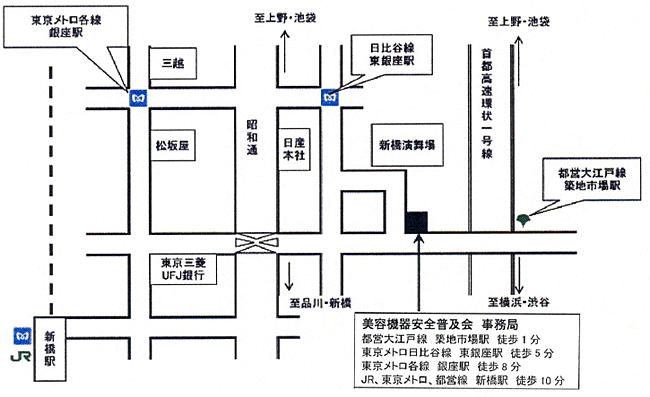 ○第9回 7月7・8日開催 <東京> 美容機器安全普及会 事務局 東京都中央区銀座7−18−12 銀座川岐ビル6F (築地市場駅より徒歩1分、東銀座駅徒歩5分、銀座駅徒歩8分、新橋駅徒歩10分) ![]() ○第10回 11月10・11日開催 <東京> 貸教室・貸会議室 内海 301会議室 東京都千代田区三崎町3-6-15-3F (水道橋駅西口より徒歩1分) TEL:03-3261-0017 ![]() <大阪> 新大阪丸ビル本館 1011号室 大阪府大阪市東淀川区東中島1-18-5 新大阪丸ビル本館10F (新大阪駅東口より徒歩2分) TEL:06-6321-1516 ![]() <福岡> 深見ビル会議室 A会議室 福岡市博多区博多駅前4丁目14番1号 地下1階 (JR博多駅博多口より徒歩約3分) TEL:092-411-4860